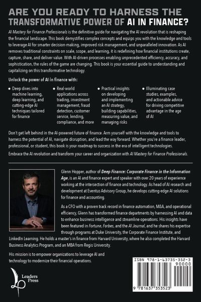Are you ready to harness the transformative power of AI in finance? AI Mastery for Finance Professionals is the definitive guide for navigating the AI revolution that is reshaping the financial landscape. This book demystifies complex concepts and equips you with the knowledge and tools to leverage AI for smarter decision-making, improved risk management, and unparalleled innovation. As AI removes traditional constraints on scale, scope, and learning, it is redefining how financial institutions create, capture, share, and deliver value. With AI-driven processes enabling unprecedented efficiency, accuracy, and sophistication, the rules of the game are changing. This book is your essential guide to understanding and capitalizing on this transformative technology. Unlock the power of AI in finance with:Deep dives into machine learning, deep learning, and cutting-edge AI techniques tailored for finance Real-world applications across trading, investment management, fraud detection, customer service, lending, compliance, and more Practical insights on developing and implementing an AI strategy, building capabilities, measuring value, and managing risks Illuminating case studies, examples, and actionable advice for driving competitive advantage in the age of AI Don't get left behind in the AI-powered future of finance. Arm yourself with the knowledge and tools to harness the potential of AI, navigate disruption, and lead the way forward. Whether you're a finance leader, professional, or student, this book is your roadmap to success in the era of intelligent technologies. With a foreword by Brian Chess, Senior Vice President, Technology and AI, Oracle NetSuite Global Business Unit, AI Mastery for Finance Professionals is your key to transforming your career and organization in the AI-powered future of finance.