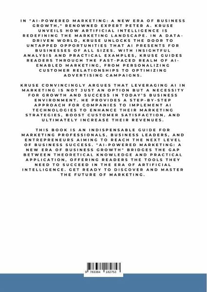 In "AI-Powered Marketing: A New Era of Business Growth," renowned expert Peter A. Kruse unveils how artificial intelligence is redefining the marketing landscape. In a data-driven world, Kruse unlocks the door to untapped opportunities that AI presents for businesses of all sizes. With insightful analysis and practical examples, Kruse guides readers through the fast-paced realm of AI-enabled marketing, from personalizing customer relationships to optimizing advertising campaigns.Kruse convincingly argues that leveraging AI in marketing is not just an option but a necessity for growth and success in today's business environment. He provides a step-by-step approach for companies to implement AI technologies to enhance their marketing strategies, boost customer satisfaction, and ultimately increase their revenues.This book is an indispensable guide for marketing professionals, business leaders, and entrepreneurs aiming to reach the next level of business success. "AI-Powered Marketing: A New Era of Business Growth" bridges the gap between theoretical knowledge and practical application, offering readers the tools they need to succeed in the era of artificial intelligence. Get ready to discover and master the future of marketing.