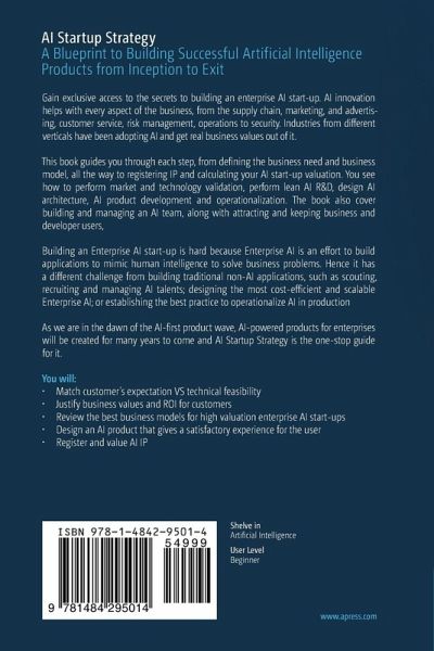This book guides you through each step, from defining the business need and business model, all the way to registering IP and calculating your AI start-up valuation. You see how to perform market and technology validation, perform lean AI R&D, design AI architecture, AI product development and operationalization. The book also cover building and managing an AI team, along with attracting and keeping business and developer users,