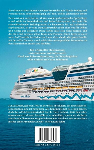Sie träumen schon immer von einer Kreuzfahrt mit Titanic-Feeling und romantischem Sonnenuntergang auf dem endlos glitzernden Meer?Genauso ergeht es Karina, Mutter zweier pubertierender Sprösslinge - und erntet im Freundeskreis und beim Göttergatten, der mehr für schweißtreibende Trekkingtouren zu begeistern ist, nichts als spöttisches Kopfschütteln. Ist so eine Luxus-Kreuzfahrt nicht eher was für Oldies und richtig gut Betuchte? Doch Karina lässt sich nicht beirren. Und dann wird ihr Traum eines Tages wahr: Mit Mann und Kids im Schlepptau, checkt sie auf Teneriffa im Hafen von Santa Cruz auf der AIDA Diva ein - und erlebt eine unvergessliche Reise zu den Kanarischen Inseln und Madeira.Ein origineller Reiseroman, unterhaltsam und informativ: ideal zur Reisevorbereitung, als Reisebegleiter oder einfach nur zum Träumen!