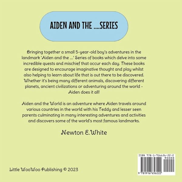 Aiden and the World is an adventure where Aiden travels around various countries in the world with his Teddy and lesser seen parents culminating in many interesting adventures and activities and discovers some of the world's most famous landmarks.