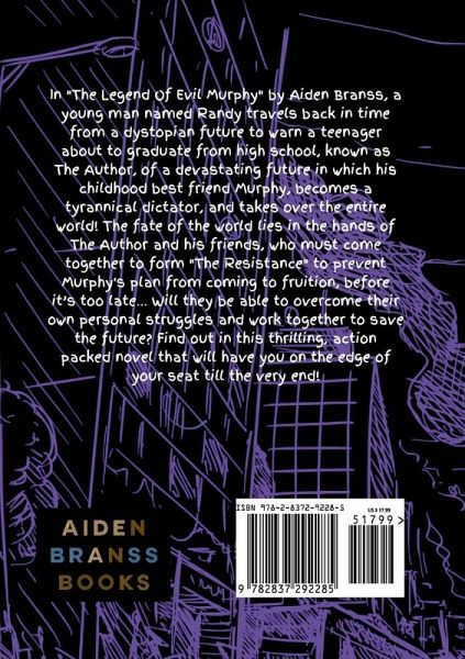 In "The Legend of Evil Murphy" by Aiden Branss, a young man named Randy travels back in time from a dystopian future to warn a teenager about to graduate from high school, known as The Author, of a devastating future in which his childhood best friend Murphy, becomes a tyrannical dictator, and takes over the entire world! The fate of the world lies in the hands of The Author and his friends, who must come together to form "The Resistance" to prevent Murphy's plan from coming to fruition before it's too late... Will they be able to overcome their own personal struggles and work together to save the future? Find out in this thrilling novel that will have you on the edge of your seat till the very end! visit aidenbranssbooks.com for more information!