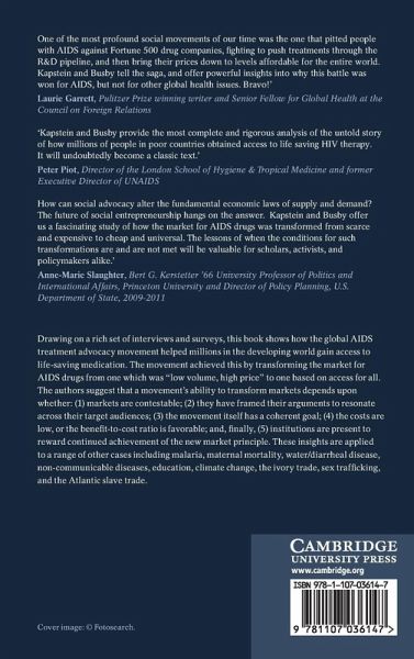 'One of the most profound social movements of our time was the one that pitted people with AIDS against Fortune 500 drug companies, fighting to push treatments through the R&D pipeline, and then bring their prices down to levels affordable for the entire world. Kapstein and Busby tell the saga, and offer powerful insights into why this battle was won for AIDS, but not for other global health issues. Bravo!' Laurie Garrett, Pulitzer Prize winner and Senior Fellow for Global Health, Council on Foreign Relations