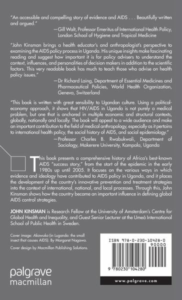 'John Kinsman brings a health educator's and anthropologist's perspective to examining the AIDS policy process in Uganda. His unique insights make fascinating reading and suggest how important it is for policy advisers to understand the context, influences, and personalities of decision makers in addition to the scientific factors. This very readable book has much to teach those who advise on health policy issues.' Dr Richard Laing, Department of Essential Medicines and Pharmaceutical Policies, World Health Organization, Geneva, Switzerland