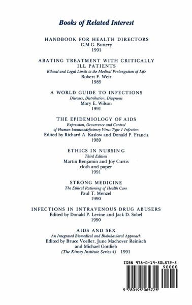 The proliferation of Acquired Immune Deficiency Syndrome (AIDS) among women and children represents one of the gravest health issues confronting contemporary society. Women, most of childbearing age, now constitute 11 percent of all cases, and the U.S. Public Health Service has projected over 3,000 cases of pediatric AIDS by the end of 1991. In the face of these sobering statistics, experts have been called upon to grapple with a difficult, compelling question: under what conditions, if any, should HIV testing of women and children be required? Also at issue are the surreptitious testing for HIV antibodies as part of routine prenatal and neonatal examinations, and whether such testing should be performed on all women and infants, or only those who belong to groups judged at "high risk." In this unique contribution to the debate about HIV screening and testing, Ruth Faden, Madison Powers, and Gail Geller have assembled perspectives from experts in public health, medicine, law, and ethics. Their wide-ranging treatment examines the history of prenatal and neonatal screening programs; informed consent; legal issues and confidentiality; reproductive decision-making; and numerous other aspects of HIV testing. Alternative policy options for both now and the future are discussed in detail. This volume provides a comprehensive analysis of these pressing medical, public health, legal, ethical, and social issues, and is essential reading for AIDS researchers and clinicians, public health specialists, ethicists, health policymakers and analysts, obstetricians, and pediatricians.