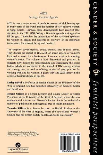 AIDS: Setting a Feminist Agenda" presents an overview of the important issues raised for feminist theory and practice by the HIV/AIDS epidemic, and outlines the direction in which feminist debates about the subject are developing. It makes essential links between feminism and HIV/AIDS work, and not only demonstrates that AIDS is a feminist issue, but also suggests areas where feminism is long overdue. The essays discuss medical issues; the specific social and political impact of HIV/AIDS on the lives of women of colour, lesbians, injecting drug users and prostitute women; And Current Health Educational And Health Promotional Practice As It relates to women.; The volume is theoretical and practical - suggesting theoretical models for understanding and challenging the social factors which are conducive to the spread of HIV among women and among men, as well as offering models of good practice for working with and for women.