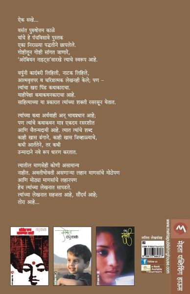 THIS IS THE TWENTY FIFTH BOOK OF STORIES BY VA PU. IT IS UNIQUE IN ITS SETTING, IT IS BASED ON THE CONCEPT OF ARABIAN NIGHTS, EACH STORY ENDS IN THE BEGINNING OF YET ANOTHER STORY. VA PU HAS HANDLED NOVELS AND DRAMAS; HE ALSO HAS HANDLED THE BIOGRAPHY AND AUTOBIOGRAPHICAL FORMS, YET HIS BASE IS THAT OF A STORY WRITER AND TO BE PRECISE THAT OF A STORYTELLER. HIS WRITING REACHES ITS PEAK, IS IN FULL BLOOM, IS IN THIS FORM. HIS STORIES ARE ALWAYS MEANINGFUL AND SENSITIVE. BUT WHEN HE PRESENTS THEM HIMSELF, THEN THESE STORIES APPEAR TO BE FULL OF FEELINGS, FRESHNESS, ENERGY AND VIBRANCY. HIS UNIQUE PRESENTATION GIVES CERTAIN DEPTHS TO MANY A WORDS SAID, MANY A SENTENCE PRESENTED; SOMETIMES SHOWING COMPASSION, SOMETIMES STYLE, SOMETIMES AFFECTIONS AND SOMETIMES MELODRAMA. NONE OF THE CHARACTERS ARE SPECIAL OR UNIQUE; THEY ALL ARE REPRESENTATIVES OF COMMON MEN AND WOMEN; YET IT IS HIS PRESENTATION THAT REVEALS THE GREATNESS OF SMALL PEOPLE AND MEANNESS OF GREAT PEOPLE. HIS WRITING HAS BEAUTY, SIMPLICITY, FLOW AND A PRANCE.