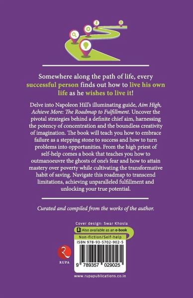 Somewhere along the path of life, every successful person finds out how to live his own life as he wishes to live it! Delve into Napoleon Hill's illuminating guide, Aim High, Achieve More: The Roadmap to Fulfillment. Uncover the pivotal strategies behind a definite chief aim, harnessing the potency of concentration and the boundless creativity of imagination. The book will teach you how to embrace failure as a stepping stone to success and how to turn problems into opportunities. From the high priest of self-help comes a book that teaches you how to outmanoeuvre the ghosts of one's fear and how to attain mastery over poverty while cultivating the transformative habit of saving. Navigate this roadmap to transcend limitations, achieving unparalleled fulfillment and unlocking your true potential. Curated and compiled from the works of the author.