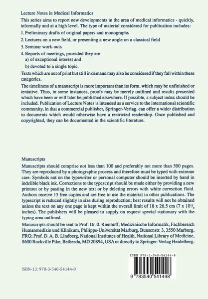 Keynote Addresses.- Model-based Image Segmentation: Methods and Applications.- Real versus Artificial Expertise: The Development of Cognitive Models of Clinical Reasoning.- Methodology.- A Developmental Perspective on the Role of Biomedical Knowledge in Medical Problem Solving; Implications for Al.- Reconstructing Medical Problem Solving Competence: MACCORD.- The Role of Domain Models in Maintaining Consistency of Large Medical Knowledge Bases.- Knowledge Representation.- A Framework for Causal Reasoning with a Functional Approach.- Modelling and Knowledge (Re)presentation within HIOS+.- Medical Knowledge Representation and Predictive Data Entry.- Clinical Applications.- A Connectionist Aid to the Early Diagnosis of Myocardial Infarction.- Automation of Medical Audit in General Practice.- An Intelligent System for Monitoring Infections in Heart Transplant Recipients.- Measuring Performance of a Bayesian Decision Support System for the Diagnosis of Rheumatic Disorders.- The Application of Distributed Artificial Intelligence to Medical Diagnosis.- Knowledge Representation of Discharge Summaries.- Modelling.- Dual Teleological Perspectives in Qualitative Circulatory Analysis.- Physiological Modelling Using RL.- Integrated Use of Causal and Algebraic Physiological Models to Support Anaesthetists in Decision Making.- Uncertainty Management.- Cytotoxic Chemotherapy Monitoring Using Stochastic Simulation on Graphical Models.- A Model-Based Approach to Insulin Adjustment.- A Blackboard Control Architecture for Therapy Planning.- Knowledge Acquisition.- A Comparative Evaluation of Three Approaches to the Acquisition of Medical Knowledge.- A Knowledge Acquisition Tool for Medical Diagnostic Knowledge-Based Systems.- Machine Learning in Data Rich Domains: Some Experiences from theKAVAS Project.- The User Perspective.- Patient's and Physician's Opinion about Computer Expert Systems.- Designing an Adaptive Interface for EPIAIM.- CAP: A Critiquing Expert System for Medical Education.
