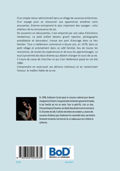 De souvenirs en découvertes, il est emporté par une valse d'émotions révélatrices. Le petit enfant devenu grand reporter, photographe autodidacte et baroudeur, trouve son port d'ancrage dans ce lieu familier. Tout a réellement commencé à douze ans, en 1978, dans ce petit village et précisément dans ce café familial, lieu de toutes les rencontres, de toutes les expériences et de tous les apprentissages. Le tout à proximité des deux drames qui allaient changer le cours de sa vie. Il n'aura de cesse de chercher ce qui s'est vraiment passé en cet été 1984.