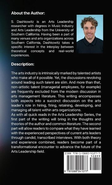 The arts industry is intrinsically marked by talented artists who make all of it possible. Yet, the discussions revolving around leading such talent are slim. And more than that, non-artistic talent (managerial employees, for example) are frequently excluded from the modern discussion in arts management literature. This writing encompasses both aspects into a succinct discussion on the arts leader's role in hiring, firing, retaining, developing, and managing all talent within arts organizations. As with all quick reads in the Arts Leadership Series, the first part of the writing will bring in the thoughts and theories of the author and common literature. The second part will allow readers to compare what they have learned with the experienced perspectives of current arts leaders through candid, transcribed interviews. With both theory and experience combined, readers become part of a transformational encounter to advance the future of the Arts Leadership field.