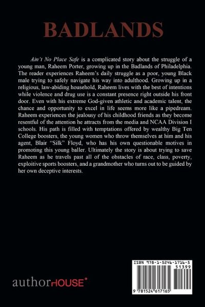 Here we have in "Ain't No Place Safe," a complicated coming-of-age story about the struggles of a young man by the name of Raheem Porter as he grows up in the Badlands section of Philadelphia, Pennsylvania. How does a young black male navigate his way safely into adulthood with so much violence and drug use sitting right outside his front door? Even with extreme God-given talent both athletically as well as academically, the chance and opportunity to excel in life can be seen as simply just a dream. Our protagonist, Raheem, is an extremely talented basketball player (who is well sought after by most division 1 schools) just as his twin-like sixteen-year-old cousin, Kareem, was. In the opening scene, Kareem is tragically shot and killed for a pair of expensive basketball sneakers while a helpless Raheem looks on. Although this traumatic event is life altering, somehow with the help of a loving grandmother (Mother Porter a.k.a. Nana) and the support of a few caring teachers, a strong-willed Raheem perseveres. Raheem's basketball talents very quickly blossom along with his size and height. He becomes something to marvel at. Instead of this creating a narcissist, it somehow humbles the young man. He subconsciously understands that his talents are a blessing and is to be used for the betterment of his family's future.
