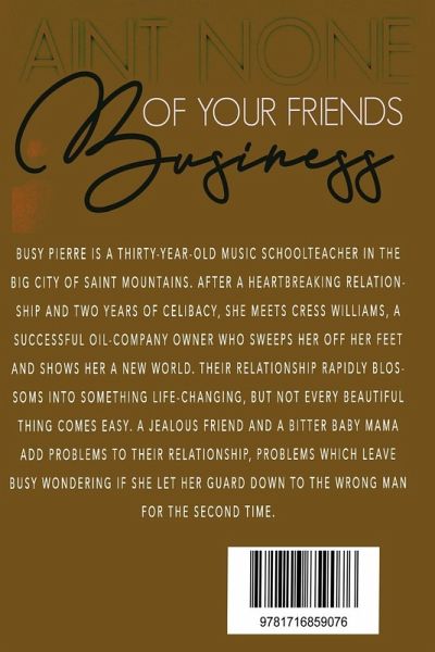 Busy Pierre is a thirty-year-old music schoolteacher in the big city of Saint Mountains. After a heartbreaking relationship and two years of celibacy, she meets Cress Williams, a successful oil-company owner who sweeps her off her feet and shows her a new world. Their relationship rapidly blossoms into something life-changing, but not every beautiful thing comes easy. A jealous friend and a bitter baby mama add problems to their relationship, problems which leave Busy wondering if she let her guard down to the wrong man for the second time.