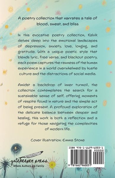 Ain't Pretty Just Beautiful is a poetry collection that narrates a tale of blood, sweat, and bliss. In this evocative poetry collection, Kalvik Jakkala delves deep into the emotional landscapes of depression, anxiety, love, longing, and gratitude. With a unique poetic style that blends lyric, free verse, and blackout poetry, each poem captures the rawness of the human experience in a world overwhelmed by hustle culture and the distractions of social media. Amidst a backdrop of inner turmoil, the collection contemplates the search for a sustainable sense of self, offering moments of respite found in nature and the simple act of being present. A profound exploration of the delicate balance between despair and healing, this work is both a reflection and a refuge for those navigating the complexities of modern life.