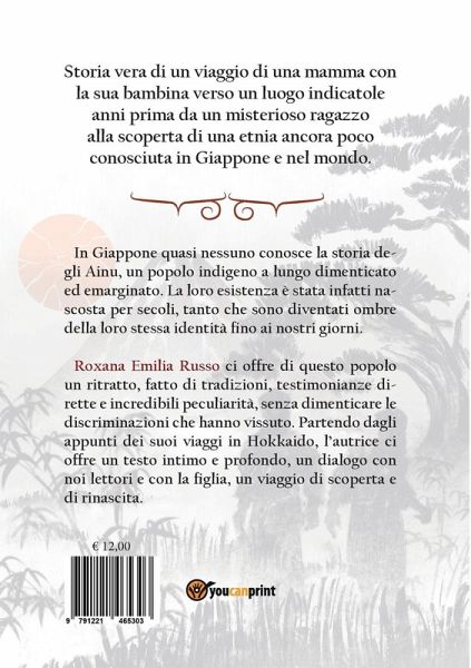 Il viaggio emozionante di una madre e di sua figlia alla scoperta degli Ainu, un popolo indigeno del Giappone, a lungo dimenticato ed emarginato. Roxana ci porta con sé in questa avventura di scoperta e rinascita, offrendoci un ritratto intimo e profondo di questo popolo misterioso e delle discriminazioni che hanno subito. Un'opera unica nel suo genere che invita alla riflessione e all'azione per migliorare noi stessi e il mondo.