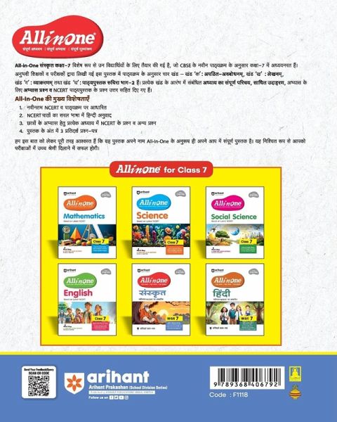 Unlock the world of Sanskrit with Arihant's "All in One Class 7 Sanskrit," meticulously designed to give young minds a comprehensive and structured learning experience. This study guide is based on the latest NCERT curriculum, covering the key themes in NCERT. The book features; ¿ Latest NCERT Content: Covers essential concepts with structured explanations to meet the curriculum's standards. ¿ Chapter Introduction: Provides a quick overview of the chapter, setting the foundation for what students will learn. ¿ Word Meaning: Each difficult word is supported with a meaning in simple and lucid language. ¿ Hindi Translation of NCERT Text: Hindi translation of the passages, verses and dialogues given in each exercise of the textbook has been given in simple Hindi language. ¿ Practice Questions: Engaging questions placed within the text to reinforce learning and promote active reading. ¿ NCERT Folder: Detailed solutions to all NCERT textbook questions, helping students solidify their understanding and preparation. All in one series is designed to Skyrocket Your Grades with All-in-One Excellence by providing One-stop solution for all your exam needs with Curated content designed for exam success, Boost your retention and excel effortlessly. Tailored for Every Learner with Clear, concise concepts for all learning styles, from basics to advanced: we've got you covered. Why Choose Arihant Intelligence? Because with us, you'll find everything you need to succeed. No more juggling multiple resources or wasting time searching for the right material. Arihant Intelligence: Where Smart Students Go to Excel, Ready to transform your exam preparation? Get into the world of Arihant Intelligence today and experience the difference!