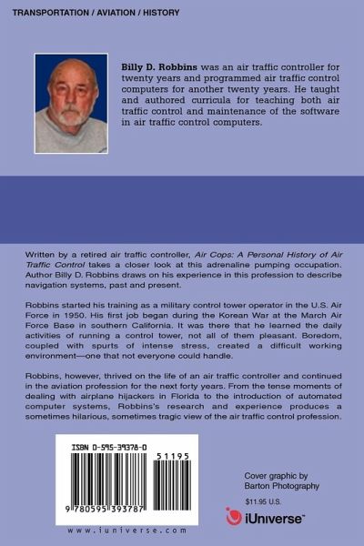 Written by a retired air traffic controller, Air Cops: A Personal History of Air Traffic Control takes a closer look at this adrenaline pumping occupation. Author Billy D. Robbins draws on his experience in this profession to describe navigation systems, past and present. Robbins started his training as a military control tower operator in the U.S. Air Force in 1950. His first job began during the Korean War at the March Air Force Base in southern California. It was there that he learned the daily activities of running a control tower, not all of them pleasant. Boredom, coupled with spurts of intense stress, created a difficult working environment-one that not everyone could handle. Robbins, however, thrived on the life of an air traffic controller and continued in the aviation profession for the next forty years. From the tense moments of dealing with airplane hijackers in Florida to the introduction of automated computer systems, Robbins's research and experience produces a sometimes hilarious, sometimes tragic view of the air traffic control profession.