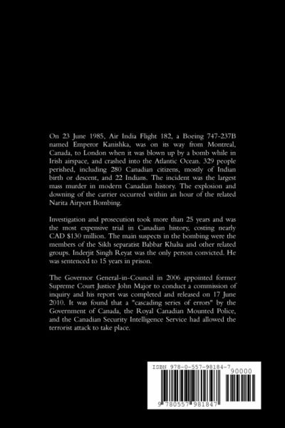 On 23 June 1985, Air India Flight 182, a Boeing 747-237B was on its way from Montreal, Canada, to London when it was blown up while in Irish airspace, and crashed into the Atlantic Ocean. 329 people perished. It was the largest mass murder in modern Canadian history. The explosion and downing of the carrier was related to the Narita Airport Bombing. Investigation and prosecution took 25 years. The suspects in the bombing were members of the Sikh separatist Babbar Khalsa. Inderjit Singh Reyat, the only person convicted, was sentenced to 15 years in prison.