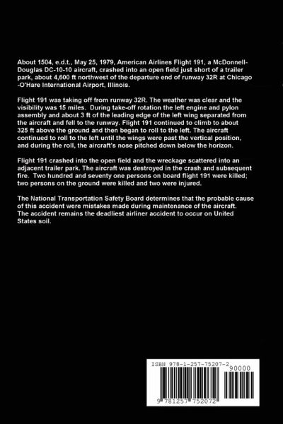 On May 25, 1979, American Airlines Flight 191, a McDonnell-Douglas DC-10-10 aircraft, on its way from Chicago to Los Angeles, crashed just after take-off near Chicago-O'Hare International Airport, Illinois. During the take off the left engine and pylon assembly and about 3 ft of the leading edge of the left wing separated from the aircraft and fell to the runway. Flight 191 crashed killing two hundred and seventy one persons on board and two persons on the ground. The accident remains the deadliest airliner accident to occur on United States soil.
