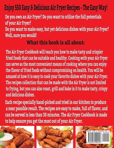 Enjoy 550 Easy & Delicious Air Fryer Recipes - The Easy Way! Do you own an Air Fryer? Do you want to utilize the full potentials of your Air Fryer? Do you want to make easy, but yet delicious dishes with your Air Fryer? Well, sure you would! The Air Fryer Cookbook will teach you how to make tasty and crispier fried foods that can be suitable and healthy. Cooking with your Air Fryer can serve as the most convenient means of cooking where you can enjoy the flavor of fried foods without compromising on health. You will be amazed at how it is easy to cook your favorite dishes with your Air Fryer. The recipes collection that can be made with the Air Fryer is not limited to frying, but you can also roast, grill and bake in it to make tasty, crispy and delicious dishes. Each recipe specially hand-picked and tried in our kitchen to produce a near possible result. The recipes are easy to make, full of flavor, and can be served in less than 30 minutes. The Air Fryer Cookbook is made to help ensure you get the most out of your Air Fryer. In this book, you will discover the most delicious and easy 550 Air Fryer recipes under various chapters such as:Breakfast Recipes Main Meals Poultry Recipes Fish and Seafood Recipes Beef & Pork Recipes Egg Recipes Side Dish Recipes Burger Recipes Vegan & Vegetarian Recipes Snack & Appetizer Recipes Dessert Recipes With this cookbook, you will learn how to make the best dishes ever with your Air Fryer. You will master your Air Fryer and improve your culinary skills to impress your friends, guests and family. To get this book, Scroll Up Now and Click on the "Buy now with 1-Click" Button to Download your Copy Right Away! Grab Your Copy Now!