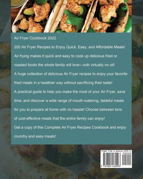 Air Fryer Cookbook 2022 200 Air Fryer Recipes to Enjoy Quick, Easy, and Affordable Meals! Air frying makes it quick and easy to cook up delicious fried or roasted foods the whole family will love-with virtually no oil! A huge collection of delicious Air Fryer recipes to enjoy your favorite fried meals in a healthier way without sacrificing their taste! A practical guide to help you make the most of your Air Fryer, save time, and discover a wide range of mouth-watering, tasteful meals for you to prepare at home with no hassle! Choose between tons of cost-effective meals that the entire family can enjoy! Get a copy of this Complete Air Fryer Recipes Cookbook and enjoy crunchy and easy meals!