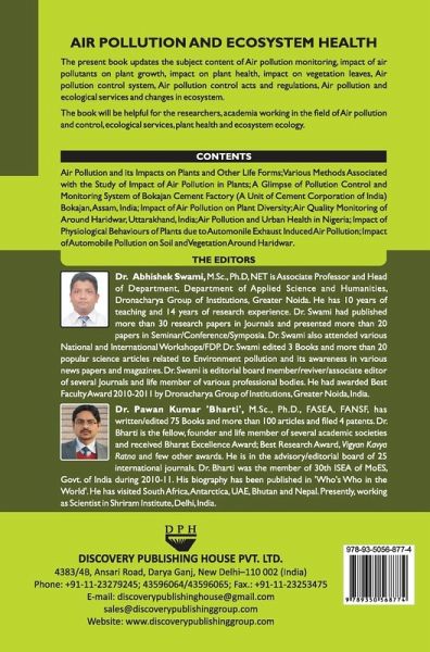 The present book updates the subject content of Air pollution monitoring, impact of air pollutants on plant growth, impact on plant health, impact on vegetation leaves, Air pollution control system, Air pollution control acts and regulations, Air pollution and ecological services and changes in ecosystem.