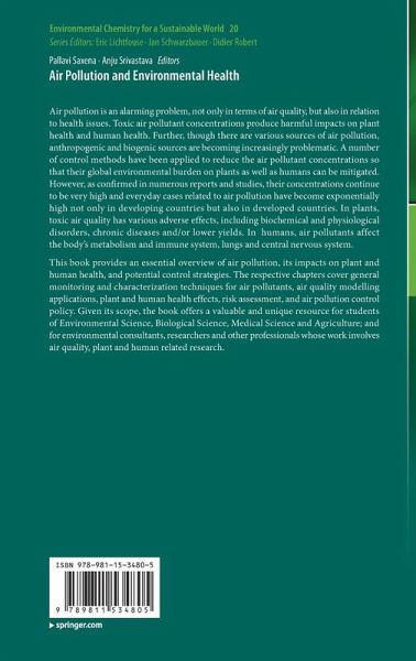 This book provides an essential overview of air pollution, its impacts on plant and human health, and potential control strategies. The respective chapters cover general monitoring and characterization techniques for air pollutants, air quality modelling applications, plant and human health effects, risk assessment, and air pollution control policy. Given its scope, the book offers a valuable and unique resource for students of Environmental Science, Biological Science, Medical Science and Agriculture; and for environmental consultants, researchers and other professionals whose work involves air quality, plant and human related research.