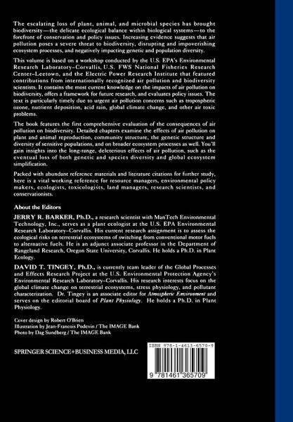 I. Introduction.- 1 The Effects of Air Pollution on Biodiversity: A Synopsis.- 2 Biological Diversity in an Ecological Context.- II. Overview of Air Pollution Exposure and Effects.- 3 Air Pollution Transport, Deposition, and Exposure to Ecosystems.- 4 Monitoring Atmospheric Effects on Biological Diversity.- 5 Action of Pollutants Individually and in Combination.- 6 Air Pollution Interactions with Natural Stressors.- III. Consequences of Air Pollution Exposure on Biodiversity.- 7 Genetic Diversity of Plant Populations and the Role of Air Pollution.- 8 Air Pollution Effects on Plant Reproductive Processes and Possible Consequences to Their Population Biology.- 9 Air Pollution Effects on the Diversity and Structure of Communities.- 10 Air Pollution Effects on Terrestrial and Aquatic Animals.- 11 Air Pollution Effects on Ecosystem Processes.- IV. Policy Issues and Research Needs.- 12 Policy Framework Issues for Protecting Biological Diversity.- 13 The Science-Policy Interface.- 14 Air Pollution Effects on Biodiversity: Research Needs.