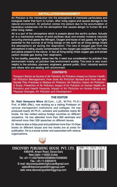Air Pollution is the introduction into the atmosphere of chemicals particulates and biological matter that harm to human, other living organs and causes damage to the natural environment. Air pollution comes into picture due to the accumulation of hazardous substances into the atmosphere that causes danger to human life and other living matter.This book is very much helpful to the scholars, planners, engineers, general public, Govt. industrial sectors and others who are dealing with environment.