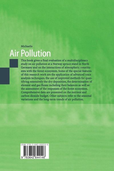 1 Introduction.- References.- 2 The Investigation Site.- References.- 3 Research Concept and Coordination.- References.- 4 General Outline of the Measuring Station.- References.- 5 Experimental Procedures.- 5.1. Sampling Techniques.- 5.2 Analytical Techniques.- References.- 6 Methodology for the Determination of Atmospheric Deposition and of Fluxes within the Ecosystem Compartments.- 6.1 Basic Considerations on Dry Deposition.- 6.2 Aerosol Measurements.- 6.3 Turbulent Fluxes in the Boundary Layer.- 6.4 Fluxes in the Stand and the Seepage Water.- References.- 7 Trace Elements in Rainwater: Concentrations and Wet Deposition.- 7.1 Concentrations of Dissolved and Particulate Constituents.- 7.2 Wet Deposition.- References.- 8 Deposition of Anions and Cations Via Precipitation.- 8.1 Meteorology and Source-Receptor Relationship.- 8.2 Deposition of SO42-, NO3-, Cl-, F- and NH4+: Mean Values, Temporal Variations and Long-Term Trends.- 8.3 pH Values and H+-Ion Deposition.- References.- 9 Trace Elements in Size-Fractionated Particulates: Concentrations and Dry Deposition into a Forest Ecosystem.- 9.1 Differential Trace Element Concentrations.- 9.2 Dry Deposition of Trace Elements.- References.- 10 Total Deposition of Trace Elements.- References.- 11 Element Supply and Element Fluxes in the Forest Ecosystem Compartments.- 11.1 Element Supply in the Mineral Soil and the Humus Layer.- 11.2 Biomass and Element Content in the Tree Compartments.- 11.3 Balance of Element Fluxes.- References.- 12 Concentrations and Deposition of Gaseous Pollutants: SO2, NO2, NO, NH3 and O3.- 12.1 Gas Concentrations and Weather Conditions.- 12.2 Mean Values, Temporal Variations and Long-Term Trends of the Gas Concentrations.- 12.3 Nocturnal Ozone Maxima.- 12.4 Dry Deposition: Mean Values, Temporal Variations and Long-Term Trends.- 12.5 Deposition Velocities.- References.- 13 Impact of Gaseous Pollutants on the Forest Ecosystem.- 13.1 Interrelations Between the Concentrations of Pollutants and Carbon Dioxide.- 13.2 Associated Vertical Fluxes.- References.- 14 Summary and Conclusions.- References.