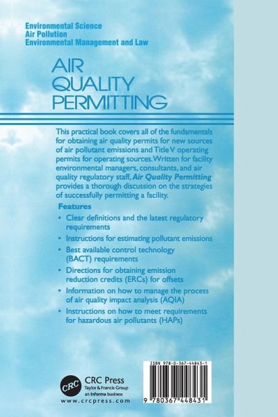 This practical book covers all of the fundamentals for obtaining air quality permits for new sources of air pollutant emissions and Title V operating permits for operating sources. Written for facility environmental managers, consultants, and air quality regulatory staff, Air Quality Permitting provides a thorough discussion on the strategies of successfully permitting a facility.