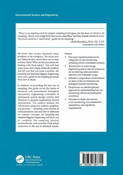 Air Sampling and Industrial Hygiene Engineering provides the how-tos for making design engineering and on-site decisions as to instrumentation selection and scheduled usage. The book presents the information using text, text outlines, graphics, and pictures - including cross sections of instrumentation and side bars to elaborate on complex concepts. It covers the basics of chemical risk assessment, biological assessment, engineering evaluation of mechanical system design criteria, and chemical or process engineering hazard assessments. The reader will understand the sampling process from initial suspicions to the use of obtained results.
