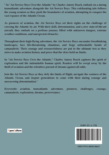 Air Service Boys Over the Atlantic by Charles Amory Beach is a thrilling tale set during World War I, focusing on the daring exploits of two young American aviators, Tom Raymond and Jack Parmly. The story begins with the duo engaged in a mission to thwart German forces by protecting a downed American pilot, Lieutenant Colin Beverly, from enemy capture. Their successful rescue highlights their skill and bravery, setting the stage for further adventures. The narrative then shifts to a bold plan devised by Lieutenant Beverly, who has secretly commissioned a massive Martin bomber capable of reaching Berlin and returning without refueling. Beverly invites Tom and Jack to join him on this audacious mission, promising glory and a significant blow to the enemy. As the story unfolds, Jack receives troubling news from home regarding a family inheritance that could be lost to his unscrupulous cousin, Randolph Carringford, unless Jack can return to America promptly. Despite this personal dilemma, Jack remains committed to his duties, participating in a night raid aimed at destroying an intermediary German bridge. The raid is fraught with danger, as the squadron faces intense anti-aircraft fire and the threat of enemy planes. The narrative captures the tension and excitement of aerial combat, showcasing the courage and determination of the young aviators. Throughout the story, themes of friendship, duty, and patriotism are interwoven with the thrilling action sequences. The characters' personal struggles and the broader context of the war provide depth to the narrative, making it not just an adventure story but also a reflection on the sacrifices made by those who served in the Great War.