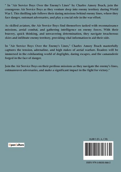 "Air Service Boys Over The Rhine" by Charles Amory Beach is a thrilling narrative set during World War I, focusing on the adventures of two young American aviators, Tom Raymond and Jack Parmly, who are part of the Lafayette Escadrille. The story begins with the duo stationed at an aviation field in France, anxiously awaiting the return of their comrades from a bombing raid over German lines. The narrative quickly unfolds into a series of high-stakes missions, including reconnaissance and combat flights, highlighting the dangers and heroism of aerial warfare. The plot thickens when Tom receives a letter from his father, Mr. Raymond, an inventor and expert in ordnance matters, who is en route to Paris for a secret mission related to the war effort. However, Tom's father fails to send any further communication, leading to growing concern about his safety. The suspense intensifies as Tom and Jack decide to travel to Paris to uncover the mystery of Mr. Raymond's silence. Upon arriving in Paris, the city is suddenly bombarded by German artillery, adding to the chaos and urgency of their mission. Amidst the turmoil, the boys navigate through the city, encountering potential espionage activities and striving to locate Tom's father. The narrative is rich with themes of bravery, friendship, and the relentless pursuit of duty amidst the backdrop of war.