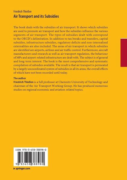 The book deals with the subsidies of air transport. It shows which subsidies are used to promote air transport and how the subsidies influence the various segments of air transport. The types of subsidies dealt with correspond to the OECD's delimitation. In addition to tax breaks and transfers, capital subsidies, infrastructure subsidies, regulatory deficits and non-internalised externalities are also included. The areas of air transport in which subsidies are identified are airports, airlines and air traffic control. Furthermore, aircraft manufacturers and research as well as air transport regulation, the behaviour of MPs and airport-related infrastructure are dealt with. The subject is of general and long-term interest. The book is the most comprehensive and systematic compilation of subsidies available. The result is that air transport is permeated by a largely uncoordinated system of subsidies in all its areas, the overall effects of which have not been recorded until today.