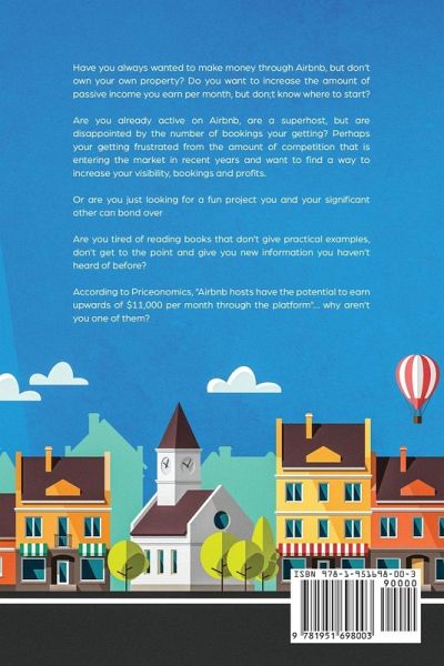 According to Inc "Airbnb has more room to grow then Uber" continue reading to find out why... Have you always wanted to make money through Airbnb, but don’t own your own property? Do you want to increase the amount of passive income you earn per month, but don't know where to start? Are you already active on Airbnb, are a superhost, but are disappointed by the number of bookings your getting? Perhaps your getting frustrated from the amount of competition that is entering the market in recent years and want to find a way to increase your visibility, bookings and profits. Are you tired of reading books that don’t give practical examples, don’t get to the point and give nothing new? Or are you just looking for a fun project you and your significant other can bond over? According to Priceonomics Airbnb hosts "have the potential to earn upwards of $11,000 per month through the platform"… why aren't you one of them? Here is just a tiny fraction of what you will discover: 50% of airbnb hosts make $500 per month, uncover the secrets to be in the top tier of hosts that earn upwards of $5000 per month (Chapter 20) The 5 key factors and skills you need to understand before you can make money through Airbnb (Chapter 27) How exactly you need to furnish, and which common household items you need to avoid at all costs (Chapter 11) How exactly you can make money in Airbnb - without owning a single property (Chapter 6) Why communicating your guests is so important - and how easy it is to get this wrong (Chapter 21) The top Airbnb gadgets you need to own (Chapter 12) The most important factors that affect your airbnb listing - and how to overcome these (Chapter 10) The exact way to create compelling Airbnb descriptions, ensuring that even if customers see the competition they choose yours (Chapter 10) The exact way to set up your pricing for success (Chapter 17) And Much, Much More. I know what your thinking The markets too saturated, the best days are over for Airbnb. While this might be true for some according to the journal of market research Airbnb has served more than 50 million customers. Forbes agrees and with Airbnb looking to grow to $3 billion by the end of 2020 with their market share up on average of 20% over the past two years. So it is entirely possible You can make upwards of $10,000 per month within your first year, but there is a hitch, you have to be quick. Airbnb can help you reach your financial goals faster you think it will, even if you know nothing about Airbnb. So if your ready to take you journey to financial freedom seriously simply scroll up and click the ADD TO CART button now.