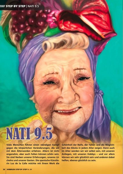 Airbrush Step by Step 84. Bitte lächeln! Step by Steps: Ausdrucksstarkes Joker-Porträt von María Sousa González "Reifes" Porträt von Luz de la Calle Emilia-Clarke-Porträt von Edith Davila Kinder-Porträt von David Kosak Interviews: Großformatige Kunst von Lothar Bohn Marissa Oosterlees Airbrush-Kunst in Spanien Airbrush Step by Step bietet Schritt-für-Schritt-Anleitungen in verschiedenen Schwierigkeitsgraden für Airbrush-Illustrationen, Custom Painting, Modellbau Bodypainting und andere Anwendungsbereiche. Es stellt aktuelle Produkte und neueste Techniken vor, präsentiert News und Berichte aus…mehr
