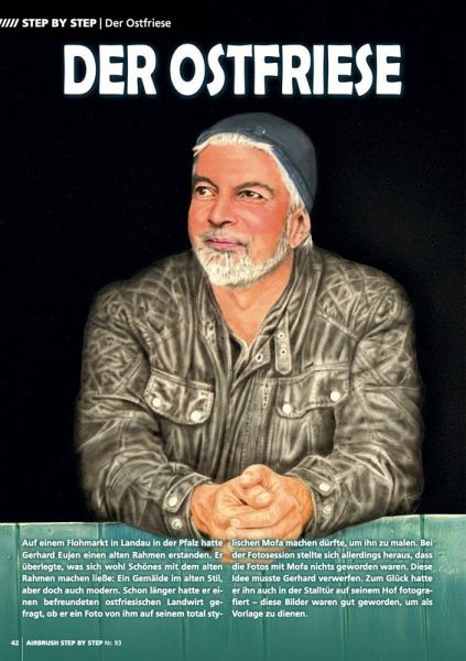Airbrush Step by Step 93: Starke Charaktere Step by Steps: Rennfahrer-Porträt von Dennis Mott Ostfriesen-Porträt von Gerhard Eujen Nasen-Studie von Markus Ehmke Frauenakt von Mitya Ka Interviews: Die Gewinner des Internationalen Sparmax Airbrush-Wettbewerbs 2024 Die weltbekannte Pin-up-Kunst von Carlos Cartagena Georg Huber über die Wände von Wynwood, Miami Airbrush Step by Step bietet Schritt-für-Schritt-Anleitungen in verschiedenen Schwierigkeitsgraden für Airbrush-Illustrationen, Custom Painting, Modellbau Bodypainting und andere Anwendungsbereiche. Es stellt aktuelle Produkte und neueste…mehr