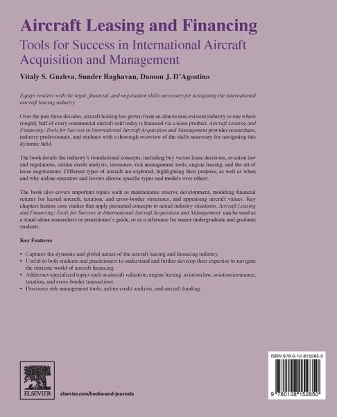 Aircraft Financing and Leasing: Tools for Success in Aircraft Acquisition and Management provides researchers, industry professionals and students with a thorough overview of the skills necessary for navigating this dynamic field. The book details the industry's foundational concepts, including aviation law and regulation, airline credit analysis, maintenance reserves, insurance, transaction cost modeling, risk management tools, such as fuel hedging, and the art of lease negotiations. Different types of aircraft are explored, highlighting their purposes, as well as when and why airline operators choose specific models over others. In addition, the book also covers important factors, such as maintenance reserve development, modeling financial returns for leased aircraft, and appraising aircraft values. Most chapters feature detailed case studies, applying concepts to actual industry circumstances. Users will find this an ideal resource for practitioners or as an outstanding reference for senior undergraduate and graduate students.