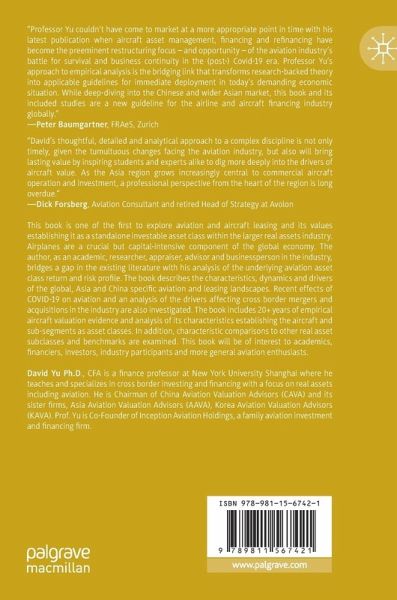 This book is one of the first to explore aviation and aircraft leasing and its values establishing it as a standalone investable asset class within the larger real assets industry. Airplanes are a crucial but capital-intensive component of the global economy. The author, as an academic, researcher, appraiser, advisor and businessperson in the industry, bridges a gap in the existing literature with his analysis of the underlying aviation asset class return and risk profile. The book describes the characteristics, dynamics and drivers of the global, Asia and China specific aviation and leasing landscapes. Recent effects of COVID-19 on aviation and an analysis of the drivers affecting cross border mergers and acquisitions in the industry are also investigated. The book includes 20+ years of empirical aircraft valuation evidence and analysis of its characteristics establishing the aircraft and sub-segments as asset classes. In addition, characteristic comparisons to other real asset subclasses and benchmarks are examined. This book will be of interest to academics, financiers, investors, industry participants and more general aviation enthusiasts.