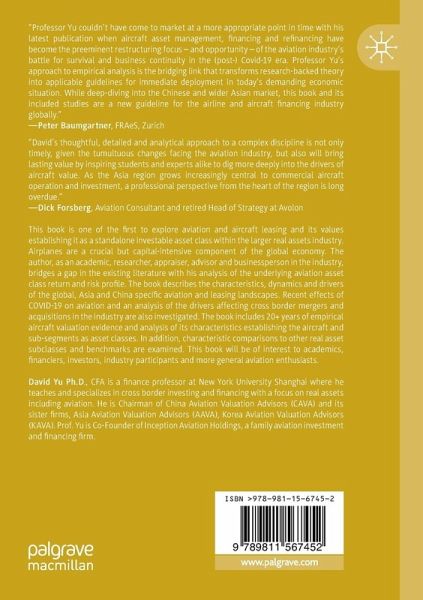 This book is one of the first to explore aviation and aircraft leasing and its values establishing it as a standalone investable asset class within the larger real assets industry. Airplanes are a crucial but capital-intensive component of the global economy. The author, as an academic, researcher, appraiser, advisor and businessperson in the industry, bridges a gap in the existing literature with his analysis of the underlying aviation asset class return and risk profile. The book describes the characteristics, dynamics and drivers of the global, Asia and China specific aviation and leasing landscapes. Recent effects of COVID-19 on aviation and an analysis of the drivers affecting cross border mergers and acquisitions in the industry are also investigated. The book includes 20+ years of empirical aircraft valuation evidence and analysis of its characteristics establishing the aircraft and sub-segments as asset classes. In addition, characteristic comparisons to other real asset subclasses and benchmarks are examined. This book will be of interest to academics, financiers, investors, industry participants and more general aviation enthusiasts.