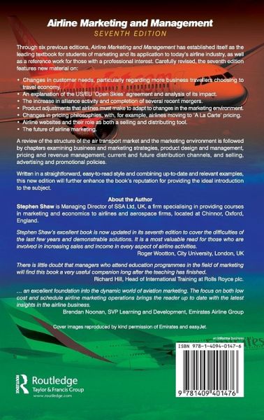 Through six previous editions, Airline Marketing and Management has established itself as the leading textbook for students of marketing and its application to today's airline industry, as well as a reference work for those with a professional interest in the area. Carefully revised, the seventh edition of this internationally successful book examines an exceptionally turbulent period for the industry. It features new material on: *Changes in customer needs, particularly regarding more business travellers choosing - or being forced - to travel economy, and analysis of the bankruptcy of 'All Business Class' airlines. * An explanation of the US/EU 'Open Skies' agreement and analysis of its impact. *The increase in alliance activity and completion of several recent mergers, and the marketing advantages and disadvantages that have resulted. * Product adjustments that airlines must make to adapt to changes in the marketing environment, such as schedule re-adjustments and the reconfiguration of aircraft cabins. *Changes in pricing philosophies, with, for example, airlines moving to 'A La Carte' pricing, whereby baggage, catering and priority boarding are paid for as extras. *Airline websites and their role as both a selling and distributing tool. *The future of airline marketing. A review of the structure of the air transport market and the marketing environment is followed by detailed chapters examining business and marketing strategies, product design and management, pricing and revenue management, current and future distribution channels, and selling, advertising and promotional policies. The reader will benefit from greater understanding of both marketing and airline industry jargon and from knowledge obtained regarding the extraordinary strategic challenges now facing aviation. Written in a straightforward, easy-to-read style and combining up-to-date and relevant examples drawn from the worldwide aviation industry, this new edition will further enhance the book's reputation for providing the ideal introduction to the subject.