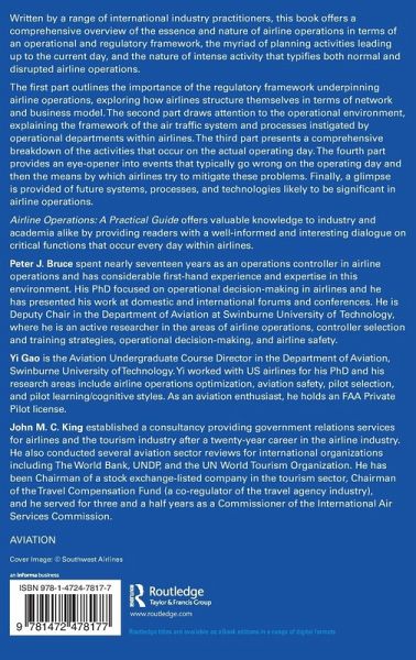 Peter J. Bruce spent nearly seventeen years as an operations controller in airline operations and has considerable first-hand experience and expertise in this environment. His PhD focused on operational decision-making in airlines and he has presented his work at domestic and international forums and conferences. Besides being chief editor of Airline Operations: A Practical Guide, he has written and published four other texts, including Understanding Decision-making Processes in Airline Operational Control (Ashgate, 2011). He is Deputy Chair in the Department of Aviation at Swinburne University of Technology, where he is an active researcher in the areas of airline operations, controller selection and training strategies, operational decision-making, and airline safety. He instigated and developed the highly popular Aviation Study Tour at Swinburne, conducting the first six global tours which took groups of students to visit key aviation organizations. Peter's teaching areas focus on aviation business and strategy, and airline planning and operations. Yi Gao is the Aviation Undergraduate Course Director in the Department of Aviation, Swinburne University of Technology. As a researcher, his principle research areas include airline operations optimization, aviation safety, pilot selection, and pilot learning/cognitive styles. As a senior lecturer, he is currently teaching Aviation Regulation and Operation and the undergraduate capstone research project. As an aviation enthusiast, he holds an FAA Private Pilot license. John M. C. King established a consultancy providing government relations services for airlines and the tourism industry after a twenty-year career in the airline industry. He also conducted several aviation sector reviews for international organizations including The World Bank, UNDP, and the UN World Tourism Organization. He has been Chairman of a stock exchange-listed company in the tourism sector, Chairman of the Travel Compensation Fund (a co-regulator of the travel agency industry), and he served for three and a half years as a Commissioner of the International Air Services Commission. John is involved in delivering postgraduate courses at Swinburne University of Technology and has served on the Board of Advice of the Institute of Transport and Logistic Studies at the University of Sydney. John is also a fellow of the Royal Geographic Society.