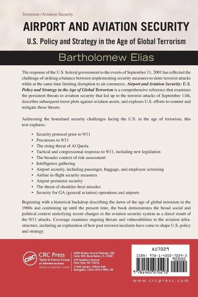 Beginning with a historical backdrop describing the dawn of the age of global terrorism in the 1960s and continuing up until the present time, this volume demonstrates the broad social and political context underlying the aviation security system that was in place on September 11th and the system that has evolved in response to the 9/11 attacks. Examining ongoing threats and vulnerabilities, the book describes how they have come to shape U.S. policy and strategy. Topics discussed include legislation, intelligence gathering, best practices for risk management, in-flight security measures, and passenger, baggage, and employee screening methods.