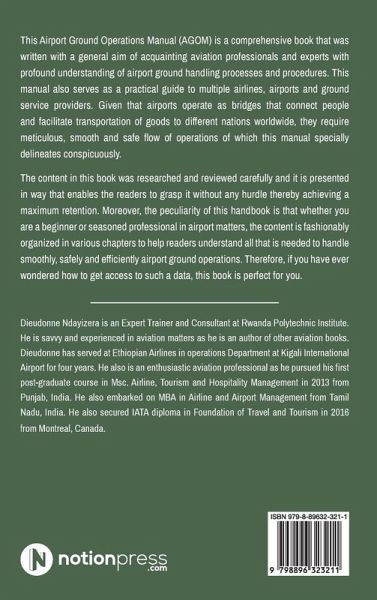 This Airport Ground Operations Manual (AGOM) is a comprehensive book that was written with a general aim of acquainting aviation professionals and experts with profound understanding of airport ground handling processes and procedures. This manual also serves as a practical guide to multiple airlines, airports and ground service providers. Given that airports operate as bridges that connect people and facilitate transportation of goods to different nations worldwide, they require meticulous, smooth and safe flow of operations of which this manual specially delineates conspicuously. The content in this book was researched and reviewed carefully and it is presented in way that enables the readers to grasp it without any hurdle thereby achieving a maximum retention. Moreover, the peculiarity of this handbook is that whether you are a beginner or seasoned professional in airport matters, the content is fashionably organized in various chapters to help readers understand all that is needed to handle smoothly, safely and efficiently airport ground operations. Therefore, if you have ever wondered how to get access to such a data, this book is perfect for you.