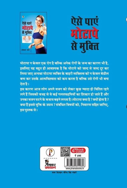 मोटापा न केवल एक रोग है बल्कि अनेक रोगों के जन्म का कारण भी है, इसलिए यह बहुत ही आवश्यक है कि मोटापे को जल्द से जल्द दूर कर लिया जाए अन्यथा मोटापा व्यक्ति के बाहरी व्यक्तित्व को न केवल बेडौल बनाकर उसके आत्मविश्वास को कम करता है बल्कि उसे को रोगी भी बना देता है। इस कारण आज लोग अपने वजन को लेकर कुछ ज्यादा ही चिंतित रहने लगे हैं जिसकी वजह से वे कई गलतफहमियों का शिकार हो जाते हैं और उनका वजन घटने के बजाय बढ़ने लगता है। मोटापा क्या है? क्यों होता है? क्या हैं इससे मुक्ति के उपाय? संबंधित विषयों को, निवारण सहित जानिए, इस पुस्तक से।
