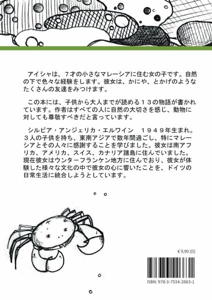 Aisha is a young girl living in a Kampong in Malaysia and experiences wonderful adventures in nature. She finds many new friends such as the little crab Ketam or the lizard Lissi. The 13 stories of this book are suitable for reading to children and also for self reading for adults of each age. The writer is able to introduce bring young and older readers closer to respect of animals and nature besides the exciting adventure stories. To feel closer and to protect nature is the strong wish of the writer.