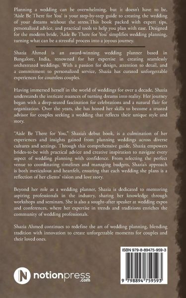 Planning a wedding can be overwhelming, but it doesn't have to be, 'Aisle Be There for You' is your step-by-step guide to creating the wedding of your dreams without the stress. This book packed with expert tips, personalized advice, and practical tools to help you plan with ease. Designed for the modern bride, 'Aisle Be There for You' simplifies wedding planning, turning what can be a stressful process into a joyous journey.