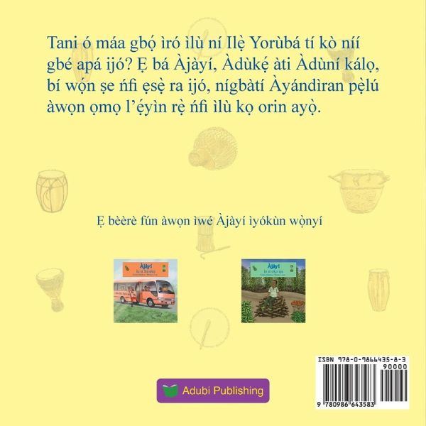 Ní Il¿¿ Yorùbá, ìlú a máa gbani-ní-ìyànjú, ìlù a máa k¿-orin, ìlù a máa báni s¿¿r¿ p¿¿lú! Nígbàtí Àjàyí àti àw¿n ¿m¿-l'¿¿bí r¿¿, Àdùk¿¿ àti Àdùní pàdé àw¿n onílú dùndún, oyin-m¿m¿ ni. In Yoruba land, drums encourage, sing and even talk! When Ajayi and his cousins, Aduke and Aduni, encounter the talking drummers, it was an unforgettable experience.