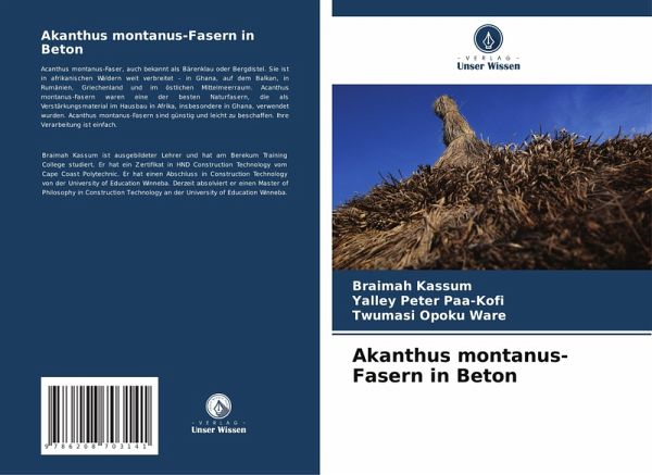 Acanthus montanus-Faser, auch bekannt als Bärenklau oder Bergdistel. Sie ist in afrikanischen Wäldern weit verbreitet - in Ghana, auf dem Balkan, in Rumänien, Griechenland und im östlichen Mittelmeerraum. Acanthus montanus-Fasern waren eine der besten Naturfasern, die als Verstärkungsmaterial im Hausbau in Afrika, insbesondere in Ghana, verwendet wurden. Acanthus montanus-Fasern sind günstig und leicht zu beschaffen. Ihre Verarbeitung ist einfach.